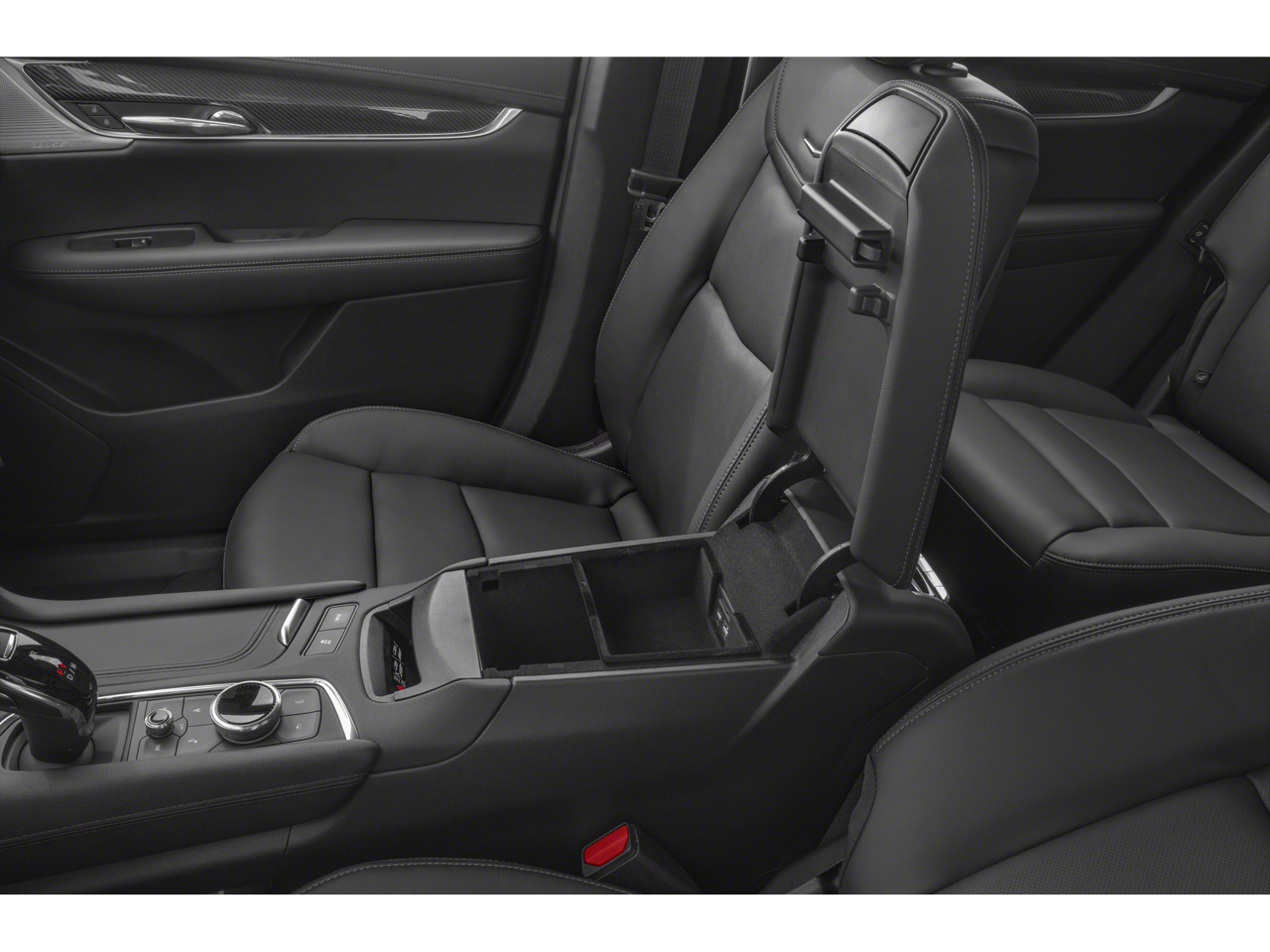 - Opens or closes when the system senses the key fob and the driver extends their foot under the left-hand side of the rear bumper over an image of the Cadillac Crest projected under the vehicle